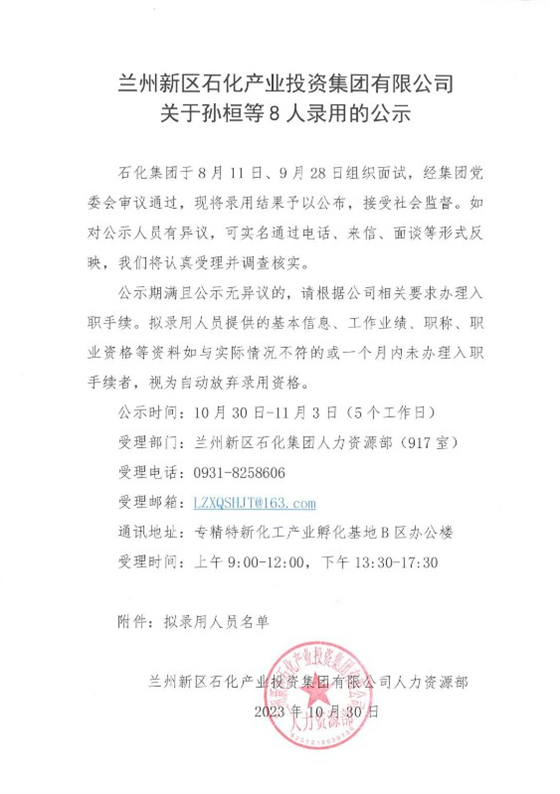 248cc永利集团关于孙桓等8人任命的公示