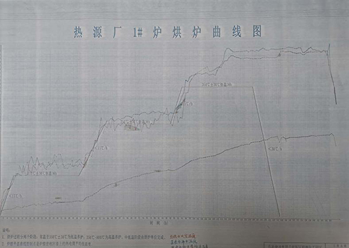 此次烘炉接纳带压烘炉的方法,,,,在燃烧风道等处共安排6台烘炉机,,,,锅炉升温分为三个阶段,,,,划分是:常温~110℃、110~250℃及250~350℃,,,,烘炉完成后凭证温度小于30℃/h降温冷却。。。由于内衬质料密度高、厚度大,,,,水剖析出需匀称缓慢,,,,精准的温度控制是烘炉乐成的要害,,,,热源厂运行职员24小时轮班作业,,,,严密监控和收罗实时数据,,,,对数据举行剖析比对和测算,,,,并凭证运行现状和生长趋势适时调解油压和风油配比,,,,使温升速率和预设曲线相吻合,,,,游离误差控制在±30℃以内。。。