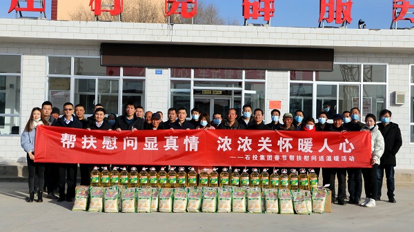 春节邻近,为使尹家庄村结对帮扶户过一个愉逸、祥和的节日,,,,切实把温暖送到群众心中,,,,2月7日上午,,,,石投集团组织开展了春节帮扶慰问送温暖运动。。