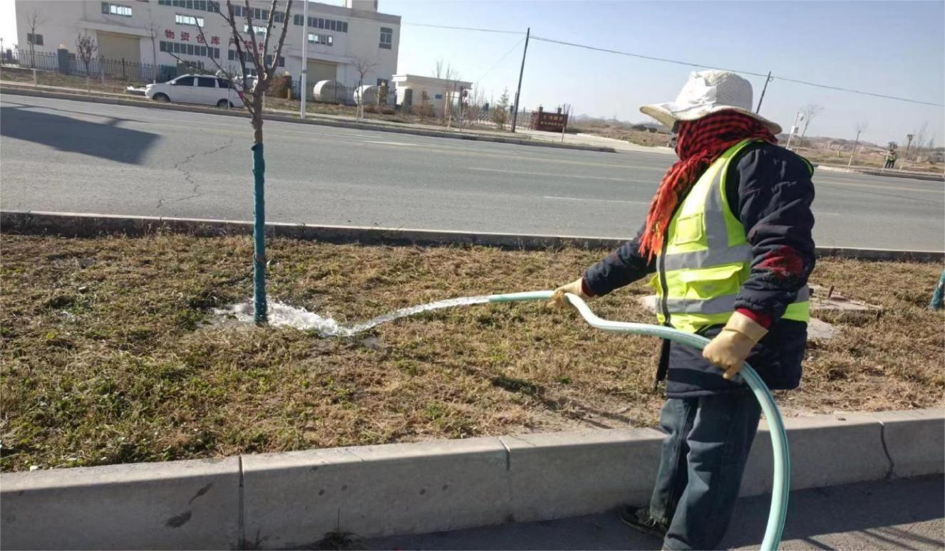 克日,,,,为增强化工园区冬季绿化养护治理,,,,进一步提高绿化景观效果和管护质量,,,,兰州新区久泰物业公司多措并举开展冬季绿化养护治理事情,,,,全心组织养护单位事情职员,,,,对各辖区内管护绿地的乔木、灌木、草坪特殊是新植树木实时举行冬灌,,,,并做好枯木杂草整理修剪事情,,,,以防苗木遭受低温冻害和来年春旱及病虫害,,,,周全提升绿化养护治理水平。。