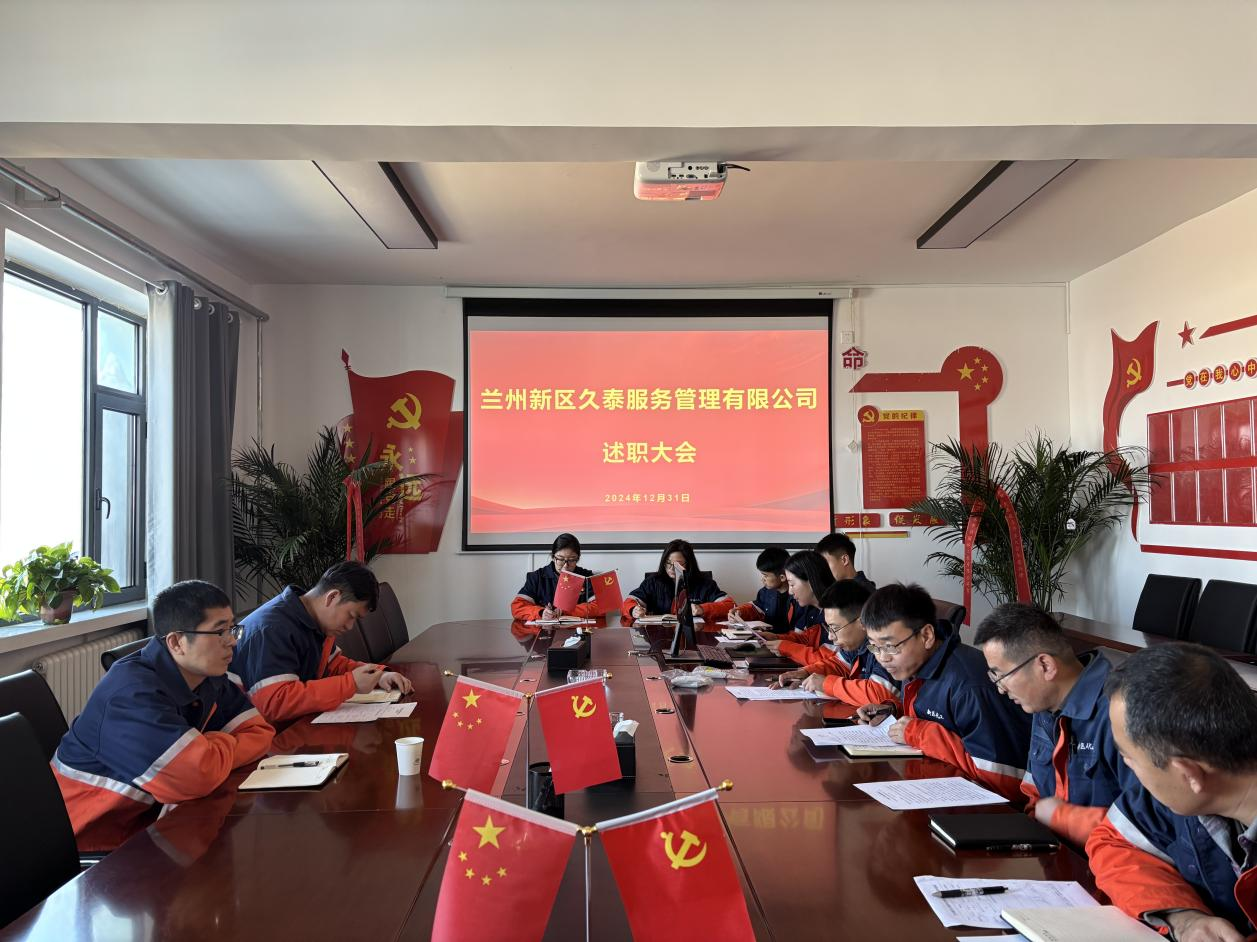 2024年12月31日兰州新区久泰效劳治理有限公司召开第一届中层述职大会,,此次聚会旨在强化公司内部治理效能,,推动整体生长迈向新高度,,全方位增进公司的生长与提升,,为公司在生长生长中稳健前行提供有力支持与包管。。。。